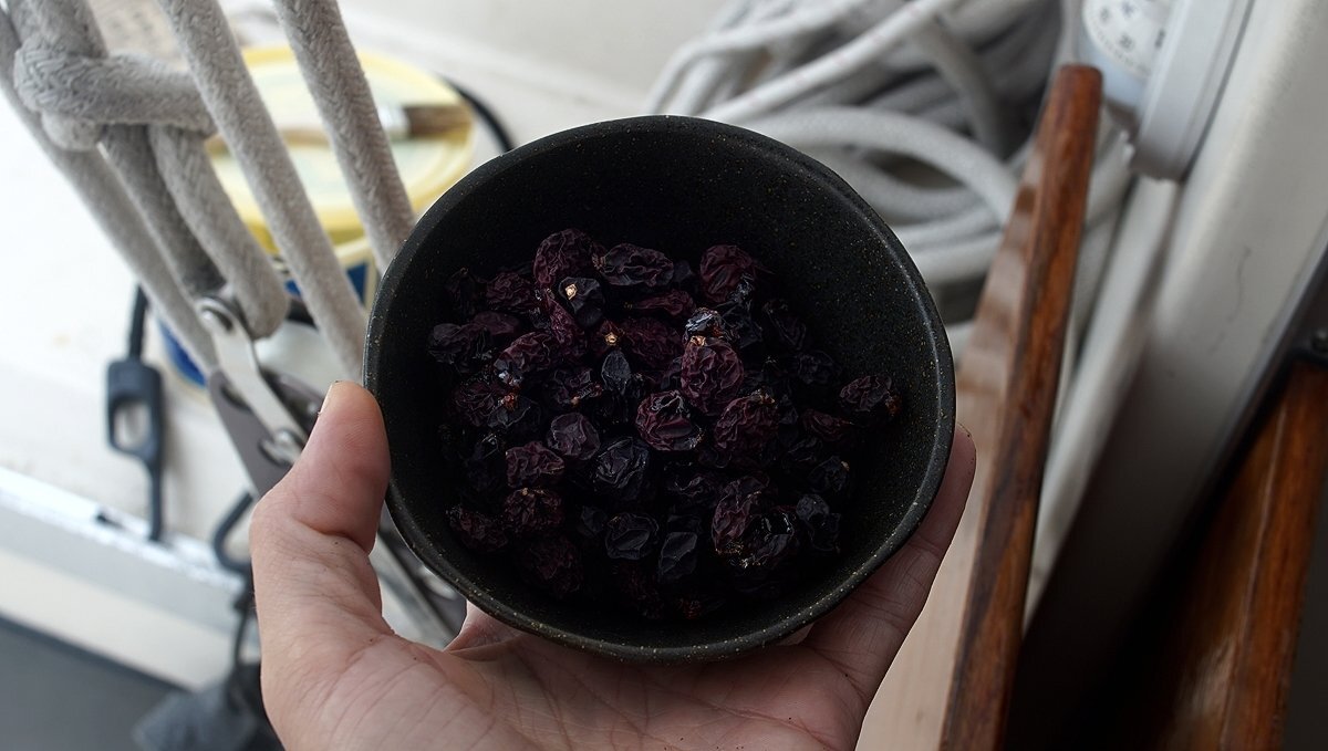 Dehydrating fresh foods when they are in season is another way to save energy, it also reduces the volume of food, saving precious space and weight on board. Drying food with the sun on a boat is more efficient in warm places.
