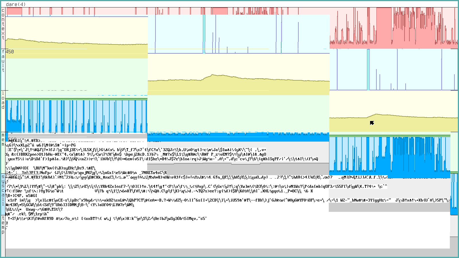 The graphical desktop runs "within" the text console in Plan 9, so writing to the system console will actually print the text verbatim onto the screen. For example, running sleep 600; echo Bug Me! > '#c/cons' will send a fairly obtrusive notification to your screen in 10 minutes. This can be a bit disconcerting for a beginner, but it's easy to redirect such messages if you don't want them to clutter up your screen. Just run cat /dev/kprint in a window and hide it. See the rio scripting section below, for some ideas on how to avoid or abuse this functionality further.